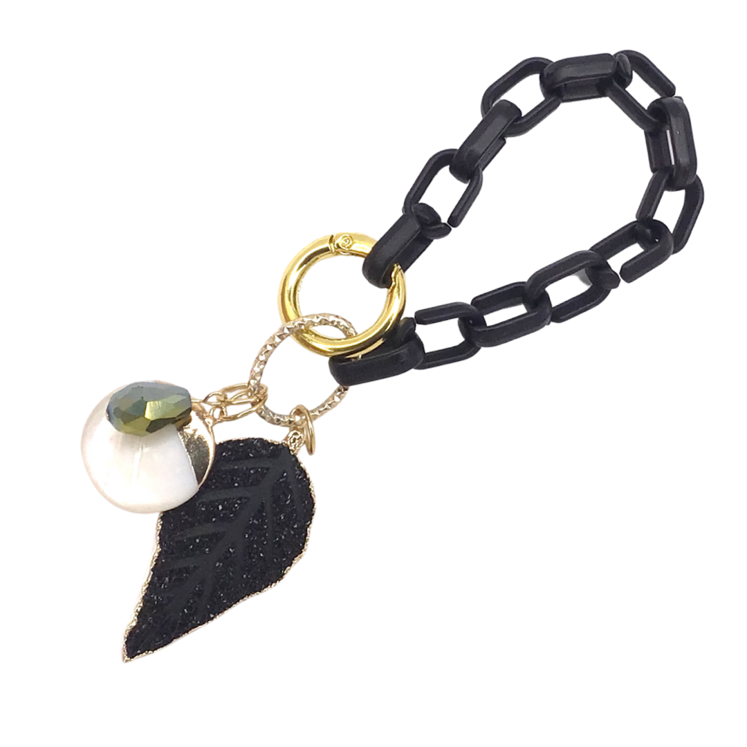 - Charms: Natural Mother of Pearl Shell, Black Leaf