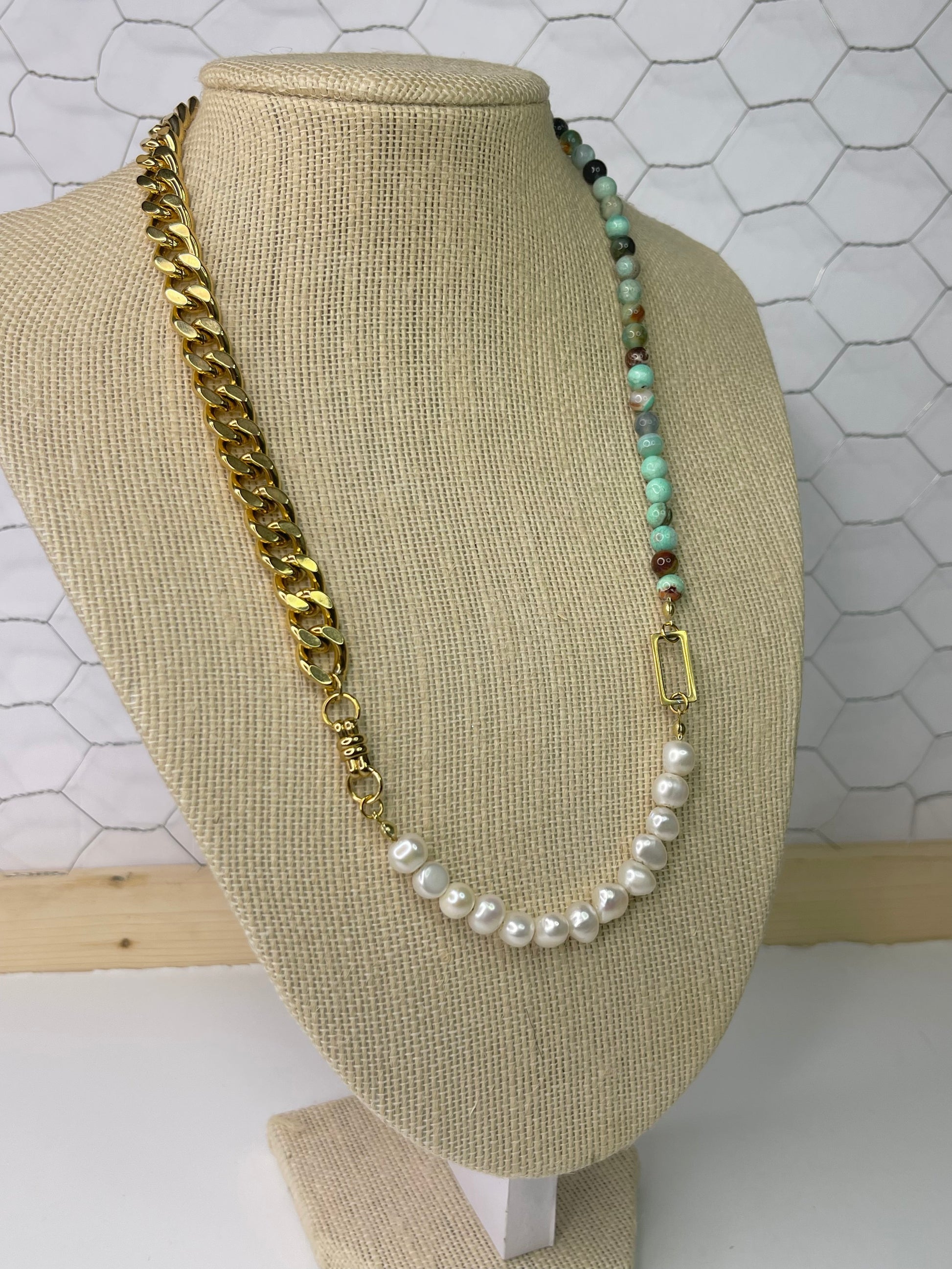 - Material: SS Chain, Gem Stone, Freshwater Pearls