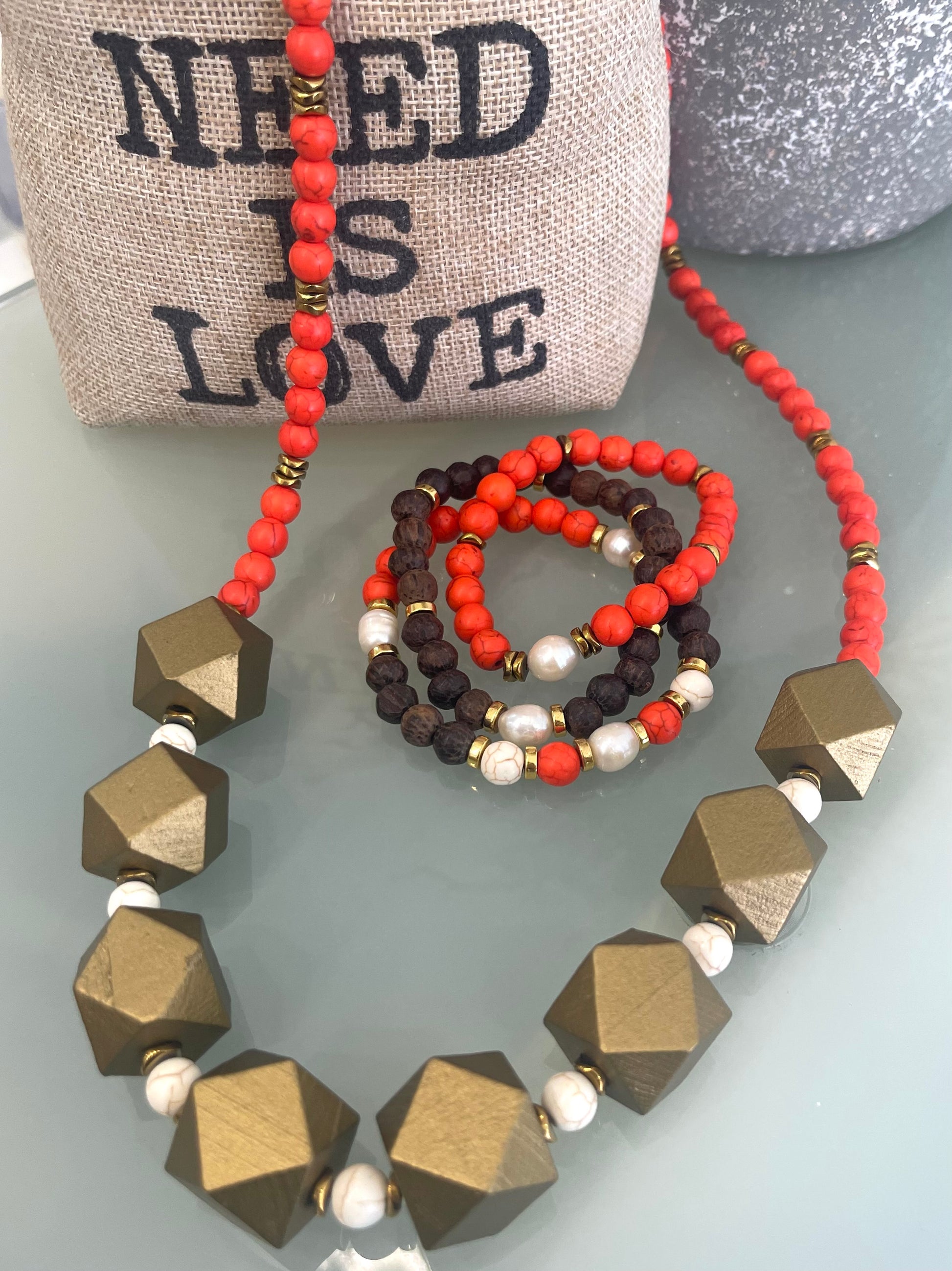 - Material: Coral Stone with Wood