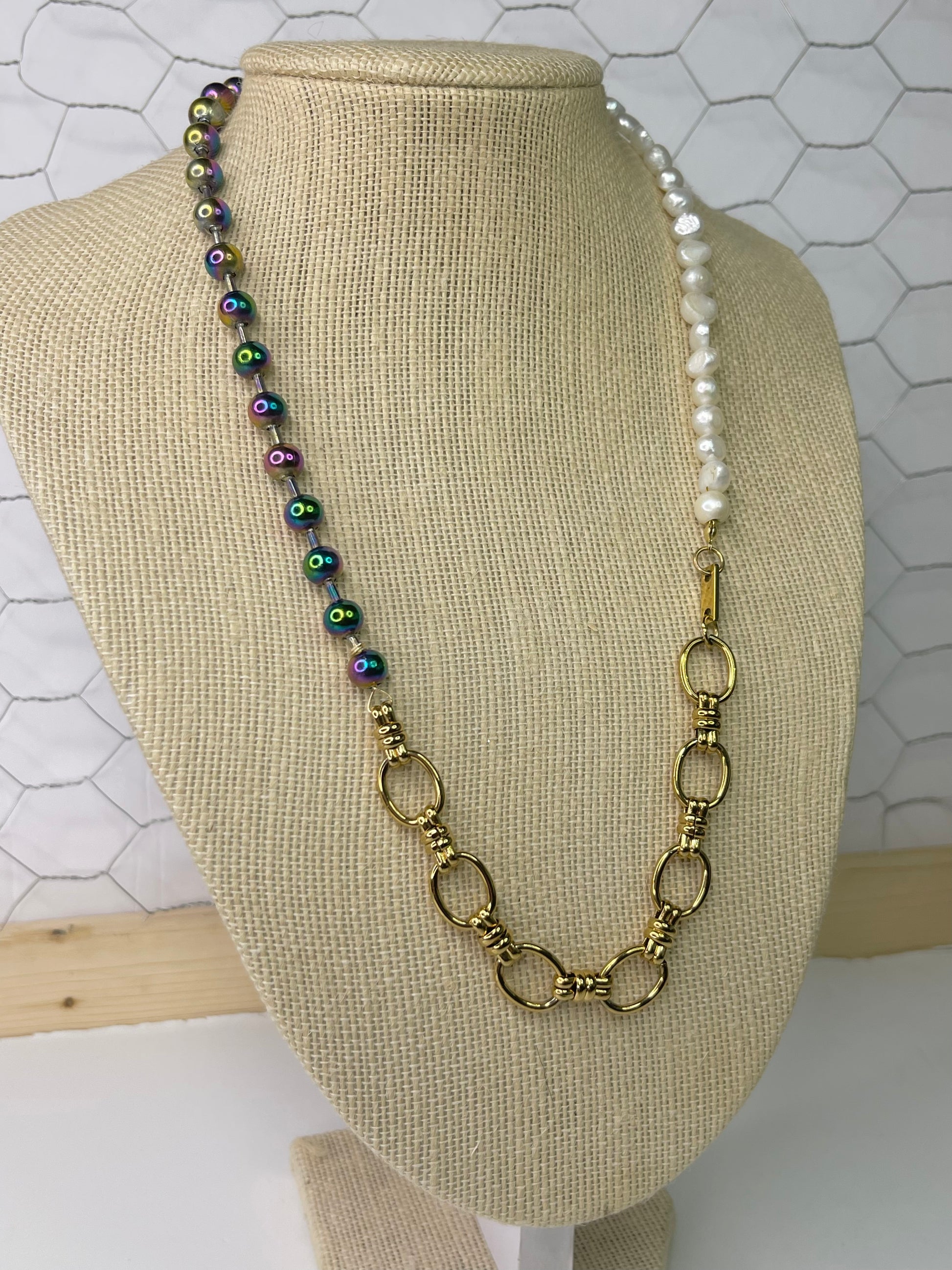 Rainbow Ball Chain & Pearl Necklace