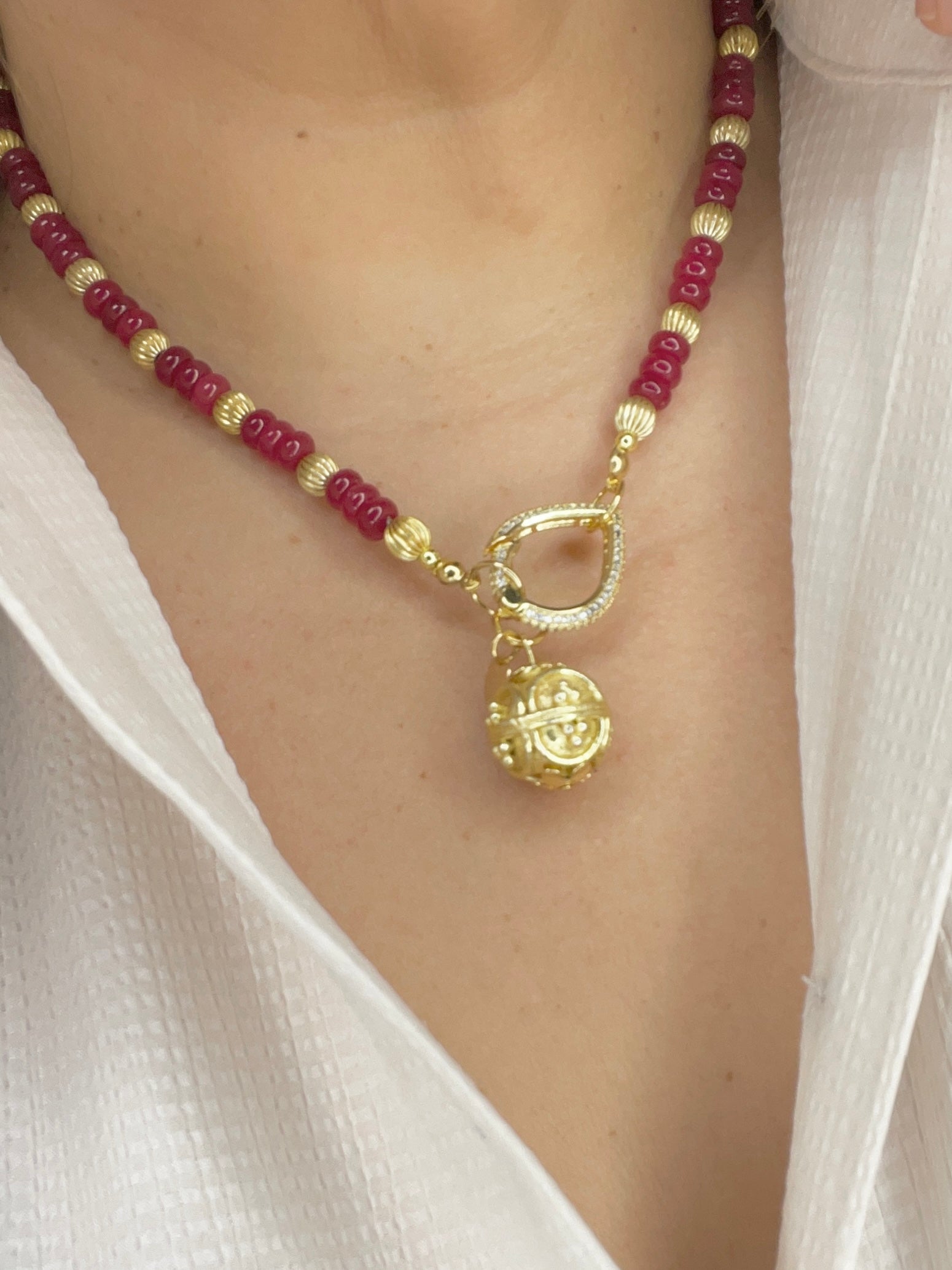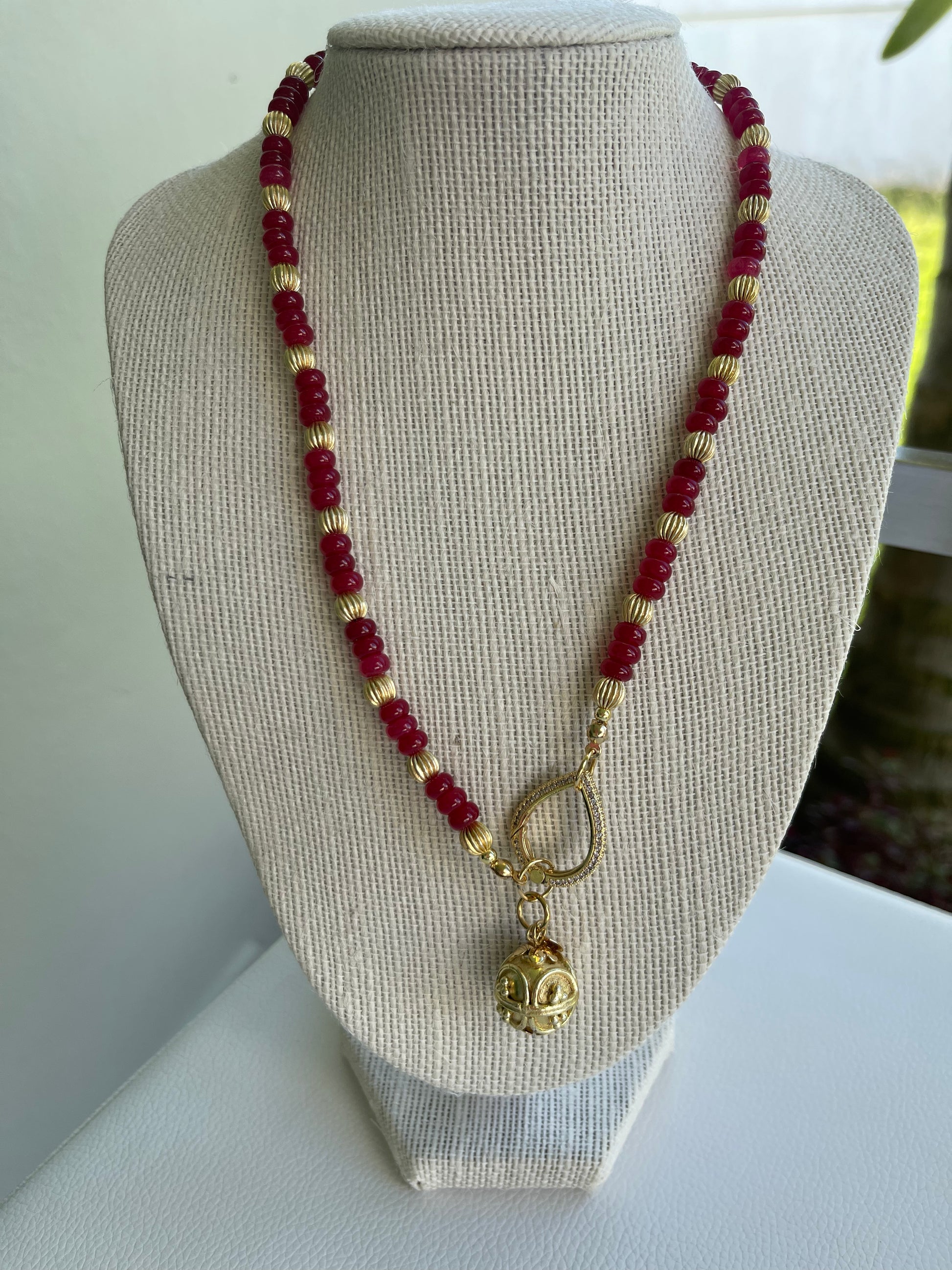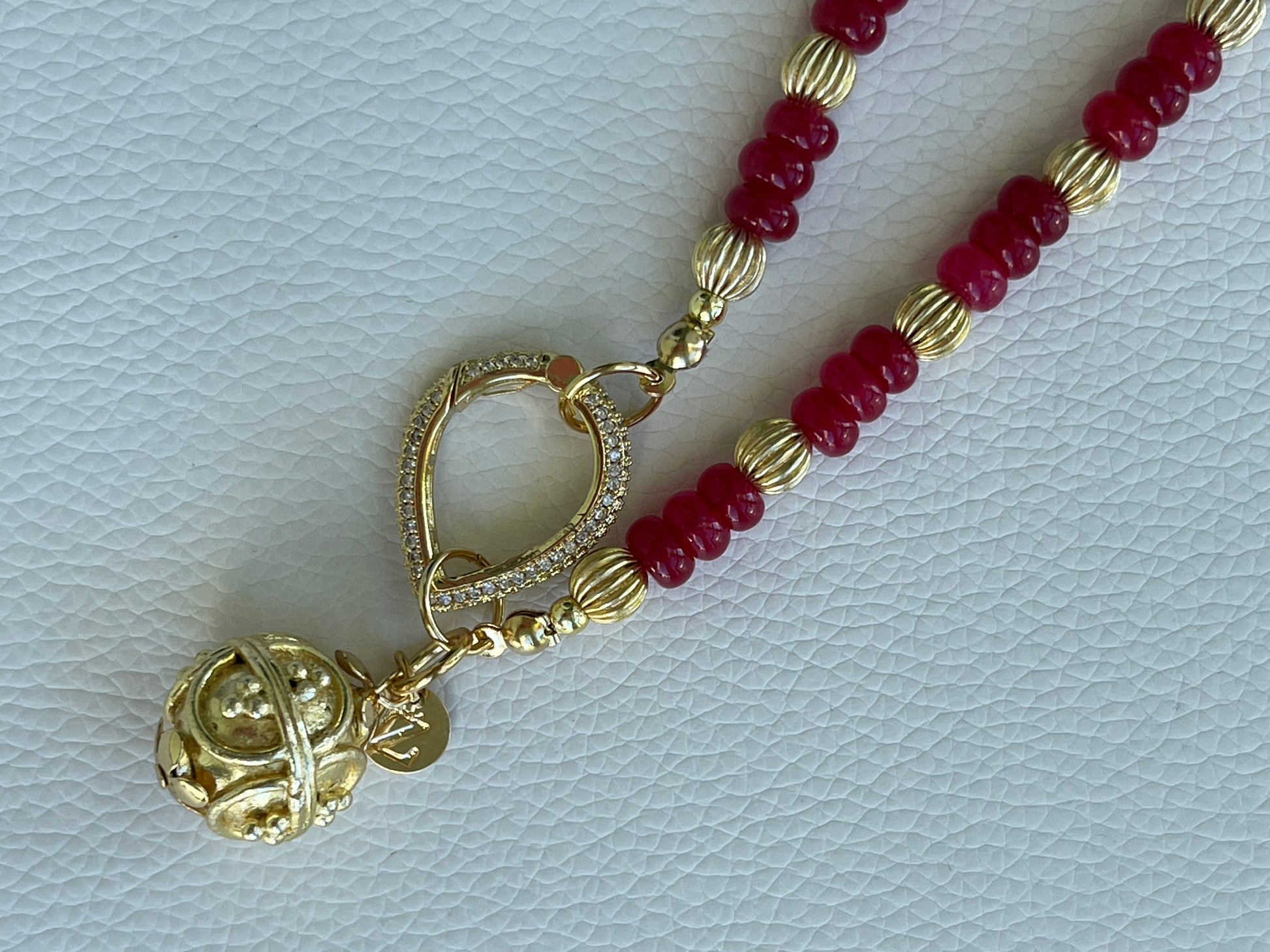 - Material: Ruby Jaspe Stone, Gold Plated Charm, Multilink Lock GP