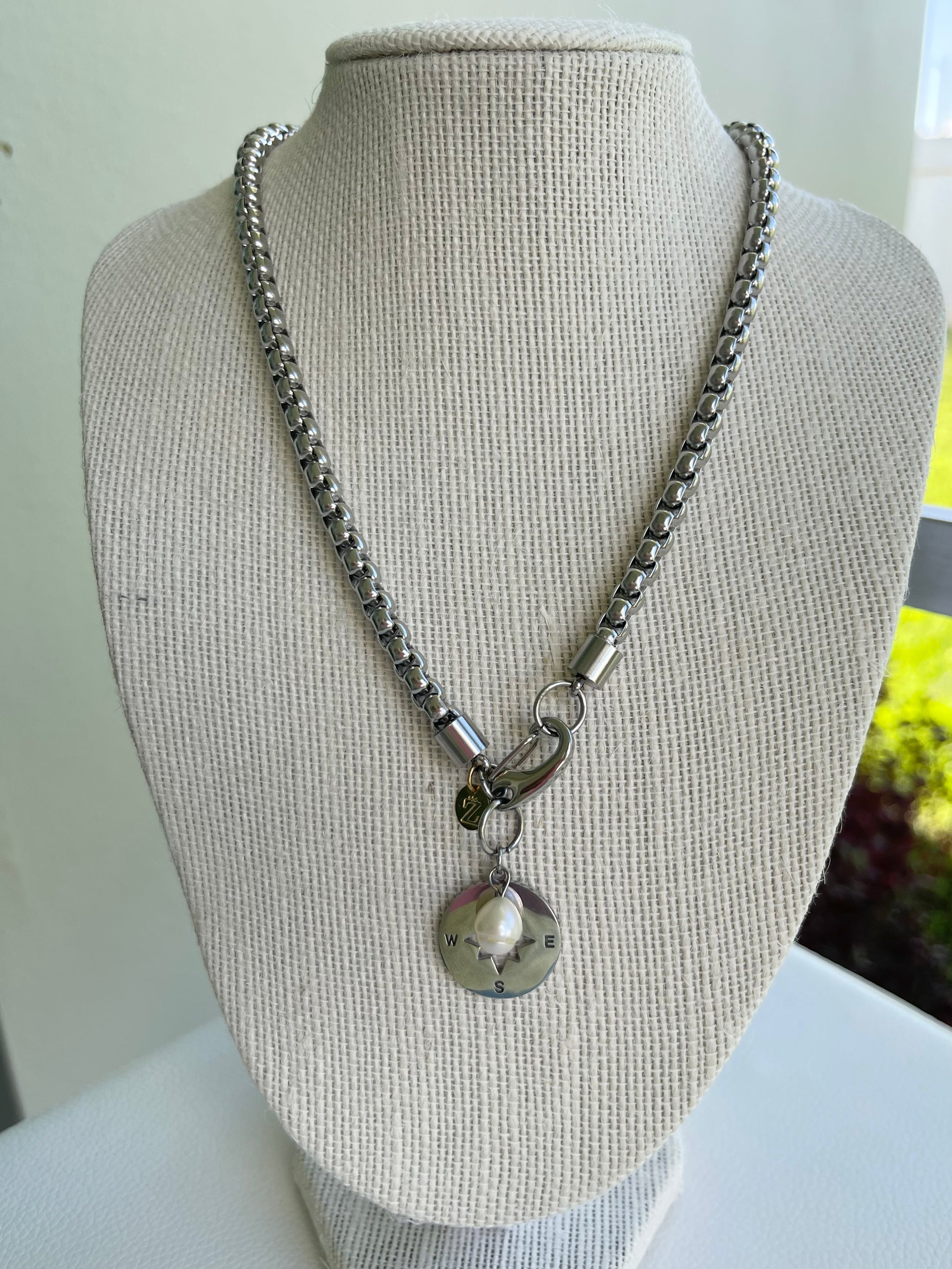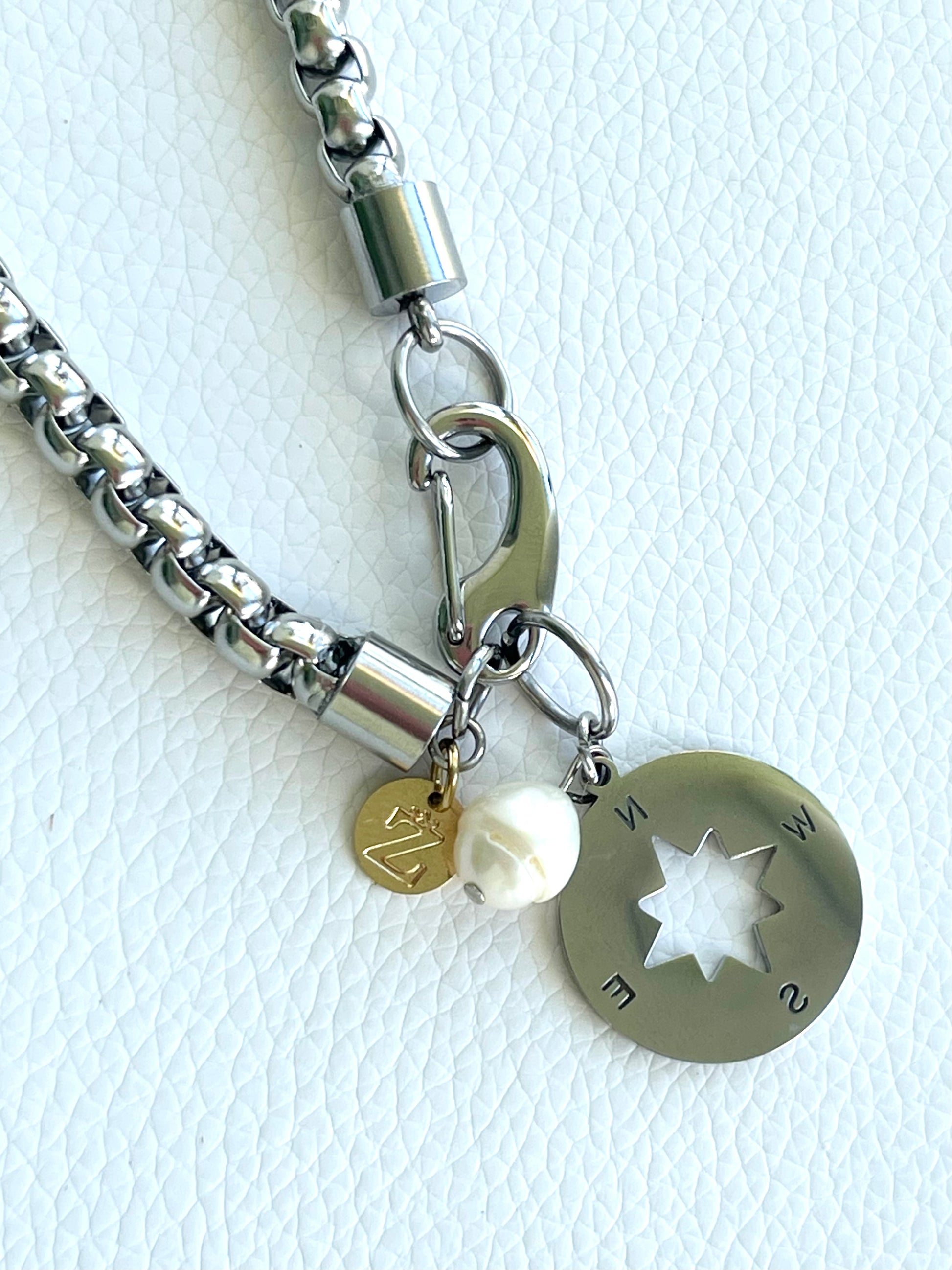 - Material: Snake Chain SS, Compass Charm, Freswater Pearl.