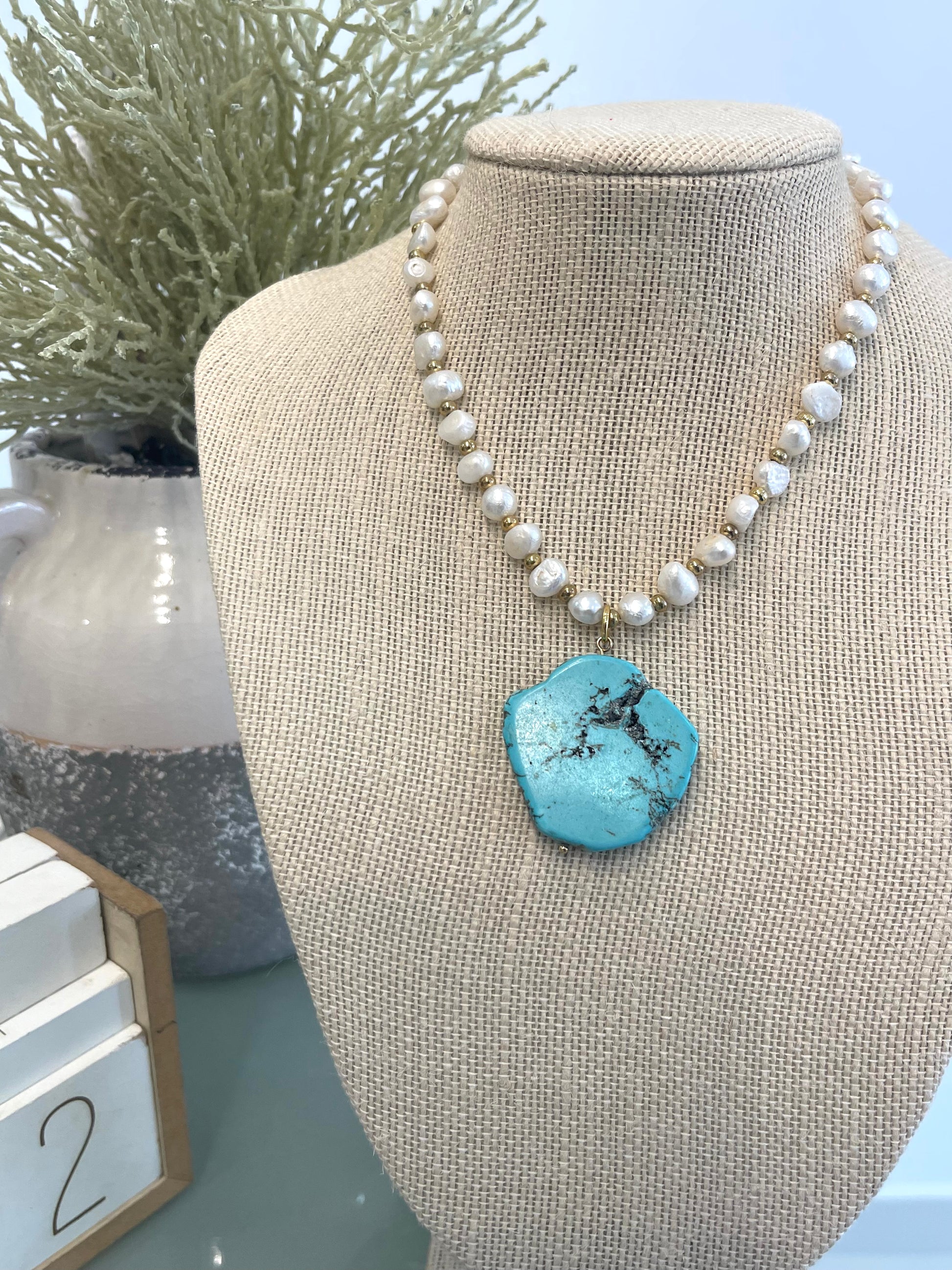 - Material: Turquoise Stone, Freshwater Pearl